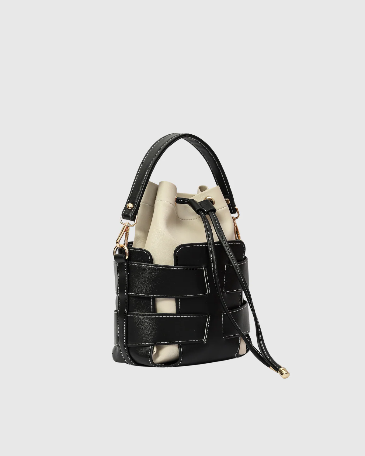 This bag blends clean lines with cozy neutrals, featuring a cream drawstring pouch wrapped in a black woven frame that literally looks like it came straight out of your Pinterest board. Finished with gold hardware for a quiet flex and a vibe that goes from café runs to dinner dates without switching bags.