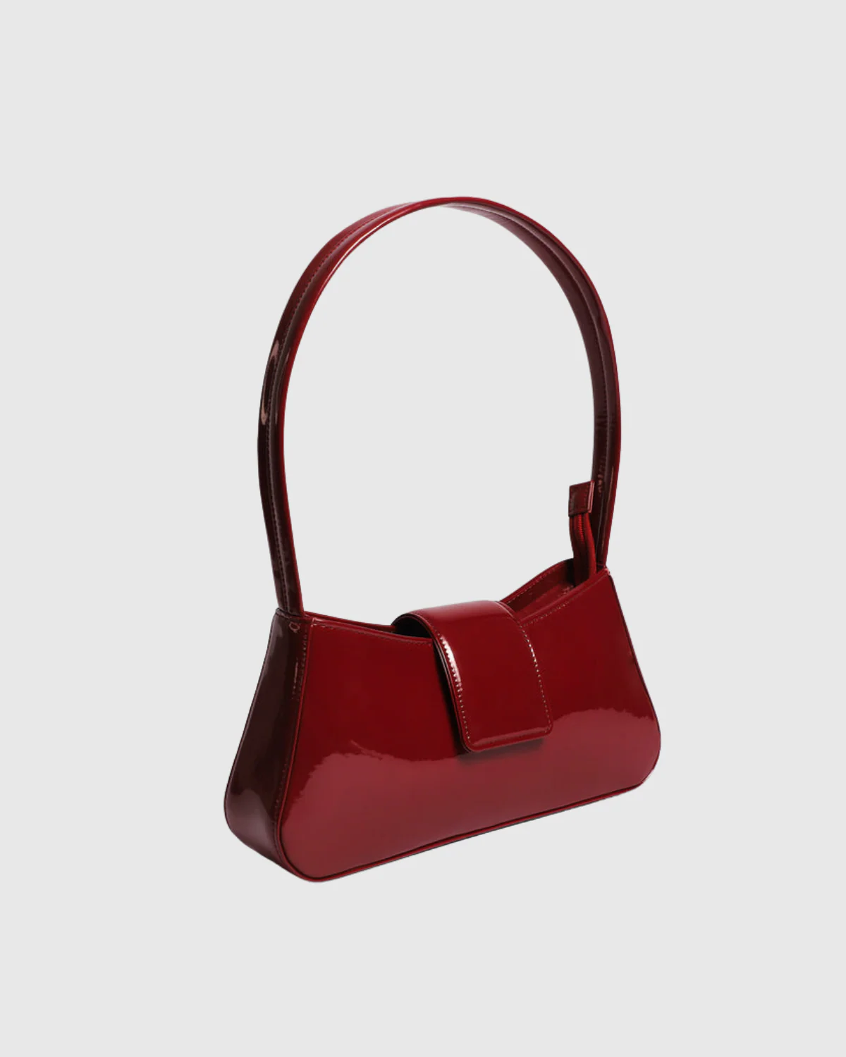 Glossy, glam, and gorgeously bold, the Cherry Cola IT GIRL Baguette is your power move in bag form. With its high-shine patent finish and sculpted silhouette, it turns even your basics into a look.
